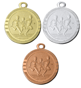 Mały medal biegowy idealny na zawody, biegi szkolne i wydarzenia sportowe.