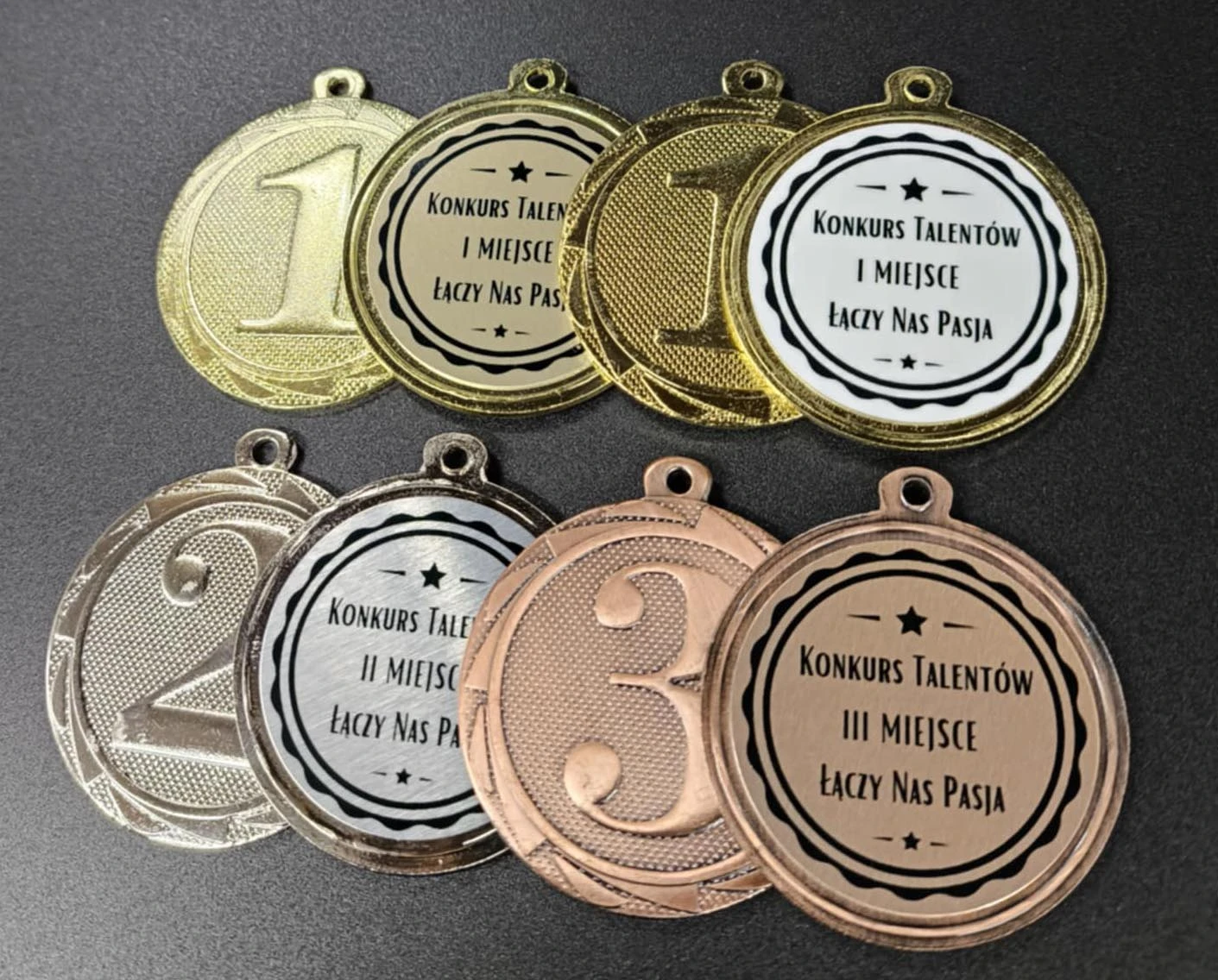 - aluminiowy krążek dopasowany do medalu (złoty / srebrny / brązowy / biały)