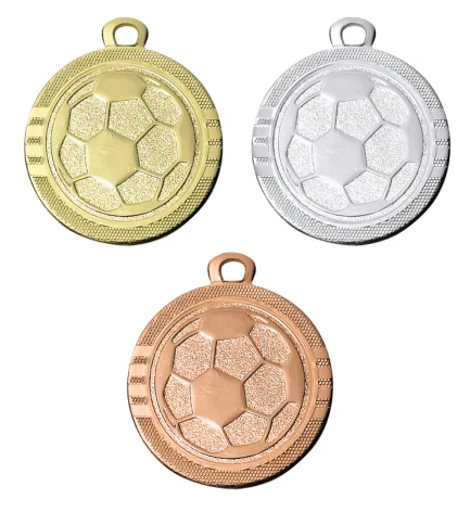 Ekonomiczny medal piłkarski 32 mm z nadrukiem i wstążką.