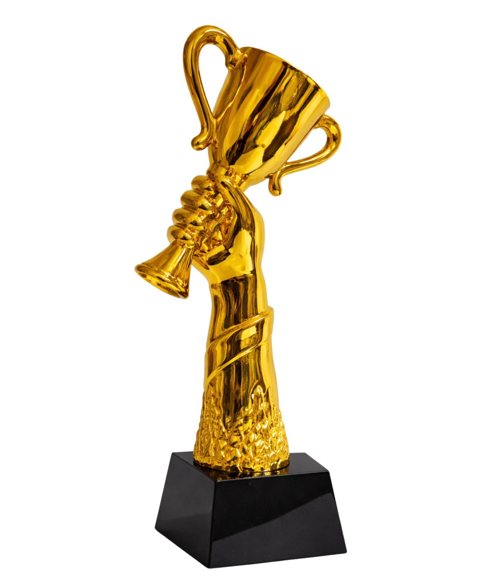 Elegancka i nowoczesna statuetka przedstawiająca dłoń unoszącą puchar – symbol zwycięstwa, sukcesu i docenienia wysiłku. Dynamiczna forma oraz połyskliwe złote wykończenie sprawiają, że statuetka przyciąga wzrok i doskonale prezentuje się jako nagroda lub wyjątkowe podziękowanie.